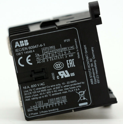安全是电力控制的首要原则。ABB IEC/EN 60947 接触器内置多种安全保护功能,包括过载保护、短路保护、欠压保护等,可有效避免因电路故障导致的设备损坏和安全事故。产品的外壳采用高强度绝缘材料制成,具备良好的绝缘性能和防触电保护,符合国际安全标准,为操作人员和设备提供全方位的安全保障。