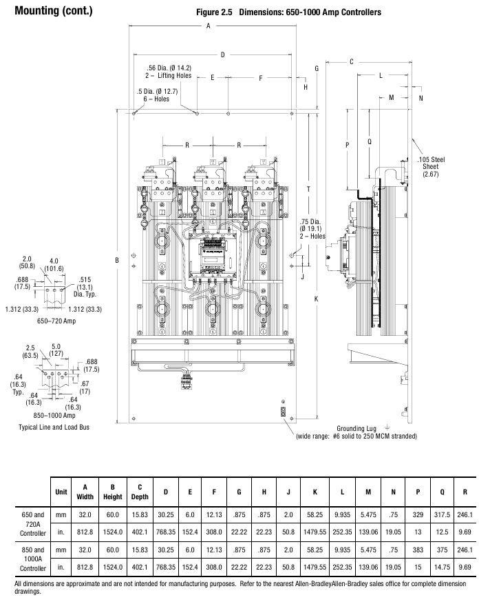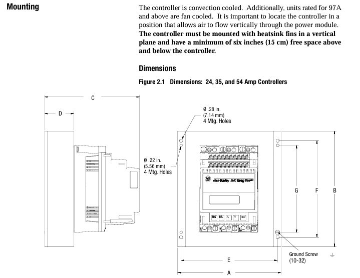 控制器为开放式设计,需安装在金属外壳内,外壳内温度需维持 0°C~50°C;不同电流等级控制器散热功率不同(如 24A 为 110W,1000A 为 2760W),通风外壳需预留足够通风口(如 24-54A 需上下各 65cm² 开口),部分型号(97A 及以上)自带散热风扇,风扇电源需单独接线。