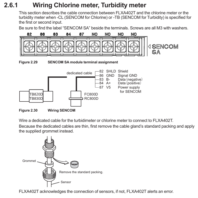 | 第一输入 | -CL | SENCOM 协议氯传感器(FC800D/RC800D) |