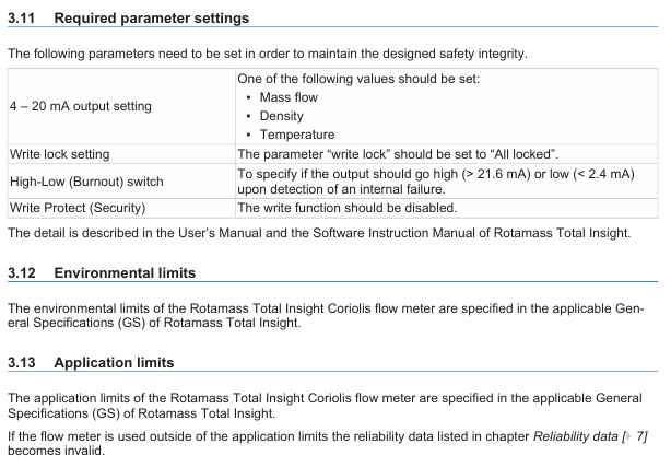 环境与应用限制:设备的环境限制和应用限制需遵循 ROTAMASS Total Insight 的通用规范(GS);若超出应用限制,可靠性数据将失效。