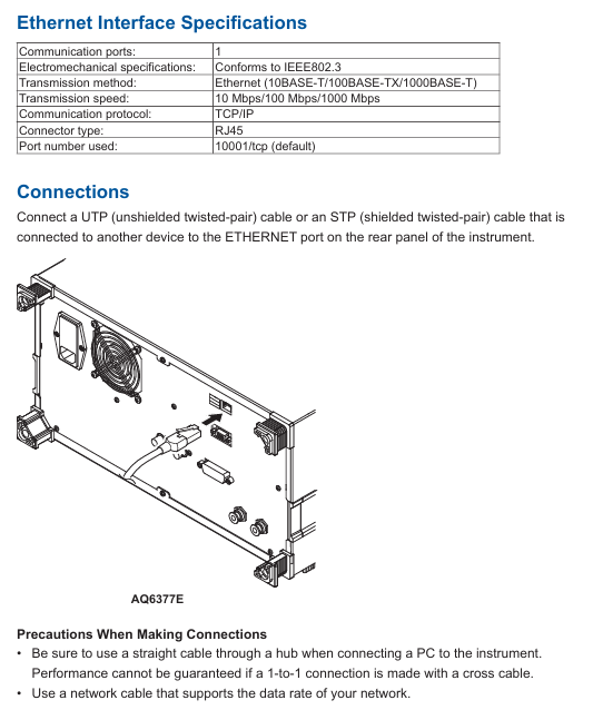 聚焦 AQ6377E 的远程控制功能,详细说明 GP-IB 接口、以太网接口的配置方法及通信指令的使用,支持通过外部控制器(如 PC)实现设备的测量参数设置、数据采集与自动化分析。
