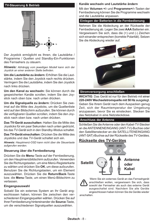 媒体与控制:USB 播放(视频 / 图片 / 音频)、EPG(电子节目指南)、Teletext(图文电视)、儿童锁、自动关机(最长 8 小时)、AVL(自动音量限制)、游戏模式(可选)。