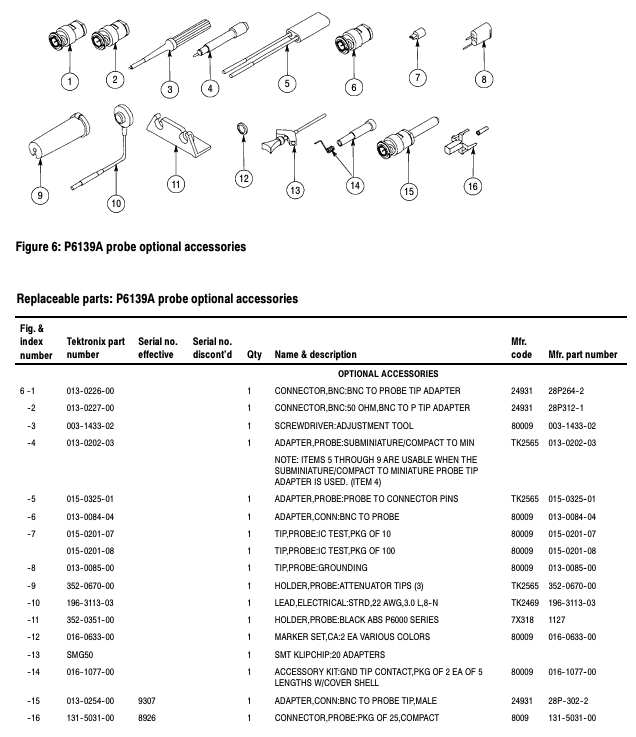 探头尖端组件(10X) 206-0441-00 含 8.0pF 电容、9MΩ 电阻,尖端损坏时更换